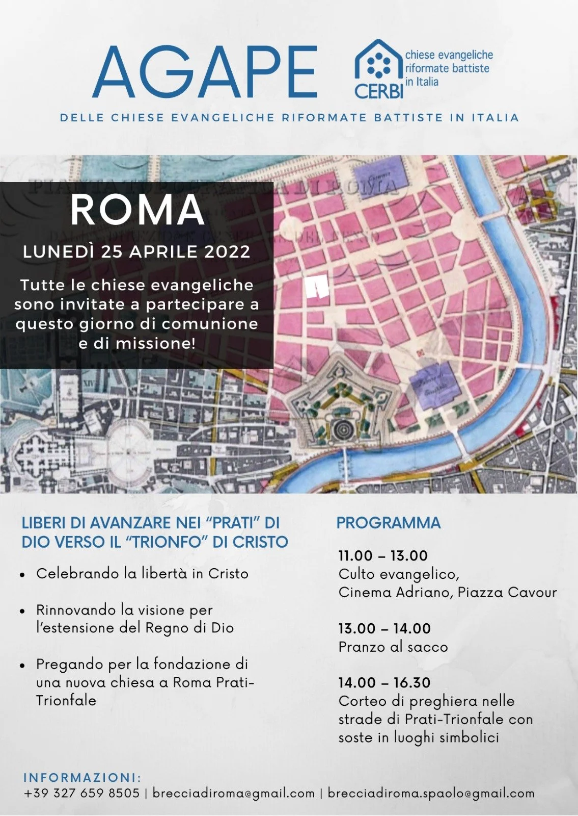 Dopo l'interruzione dovuta alla pandemia, torna la tradizionale agape del 25 aprile delle Chiese CERBI che si terrà a Roma.